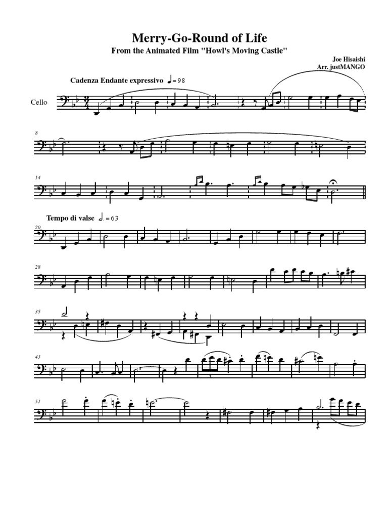 Sheet music from ichigo's comes in 3 or 4 formats, midi, mus, pdf and gif. the gif and mus files come in .zip format. most modern oses will open this without a problem, but you might need an unzipping program of some kind such as winzip.. Print and download in pdf or midi merry-go-round of life. learn how to play via this video: https://youtu.be/4f-15hhwbyy subscribe to our you tube channel: http://goo. Print and download in pdf or midi merry-go-round of life. shortened version of merry-go-round of life from howl's moving castle while i work on the full version. transcribed from the orchestral score. stay tuned! all credit to joe hisaishi for composing this amazing piece.. howl's moving castle piano duet pdf